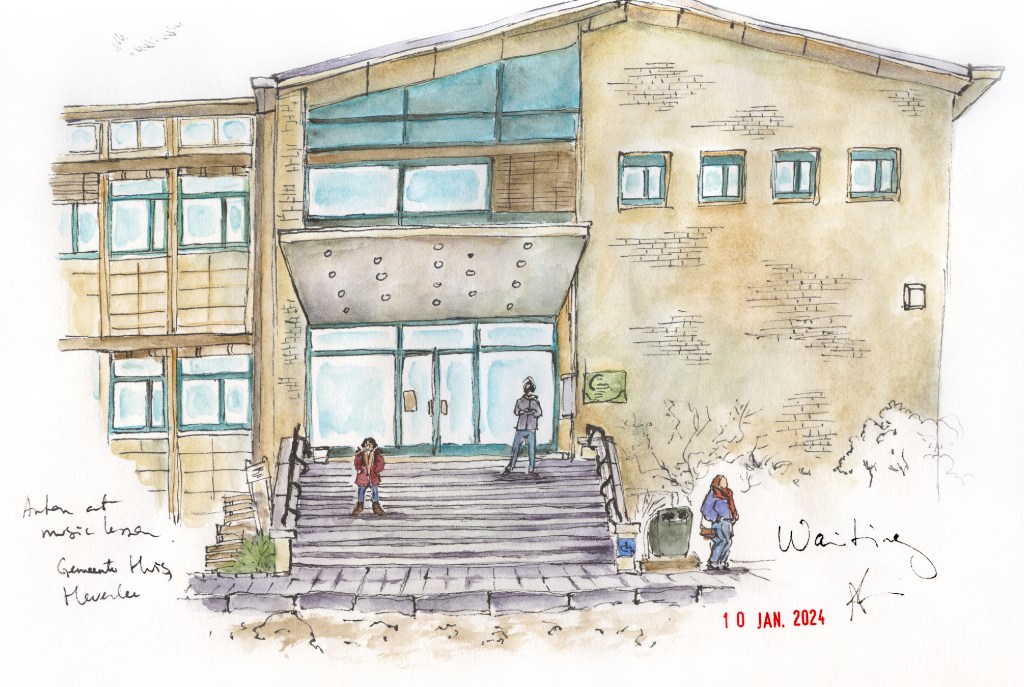 People waiting for their ride outside the Heverlee town hall. And me waiting for my passenger to come out of the town hall. Matching needs, wrong people.