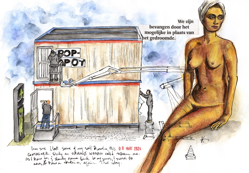 After I drew this container I felt so uninspired and empty that I resorted to the help of an orange nude woman. She reminded me of what’s important and that the sun is always just around the corner.